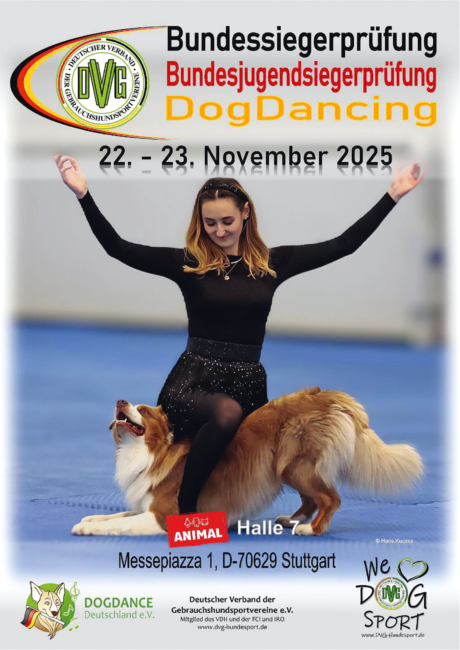 Die DVG Bundessiegerprüfung scheint aus den Kinderschuhen heraus zu sein. Mit 57 Meldungen ist die DVG Bundessiegerprüfung DogDancing deutlich größer als in den Vorjahren. Und das, obwohl der lang geplante Termin kurzfristig sehr eng in weitere Veranstaltungen gedrückt wurde. Eine Woche vorher fand die EOC DogDancing in Ungarn statt und am Wochenende danach die VDH-Qualifikation zur EOC 2026 in Schweden. Das zog noch einmal 10 Starter ab, die ihre Hunde ausruhen ließen vor der Qualifikation.