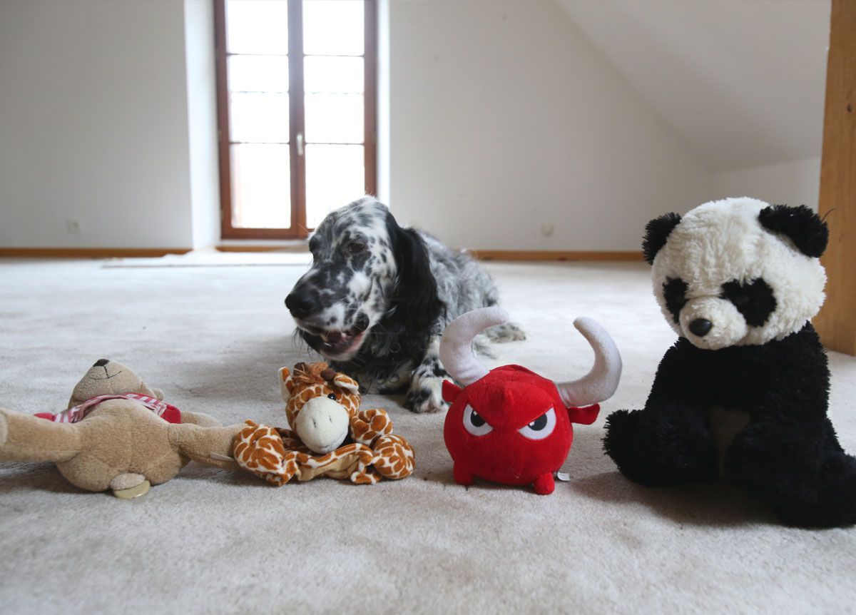 Eine weitere tolle Indoor-Idee ist das Erlernen verschiedener Bezeichnungen. Es gibt Hunde, die zahlreiche Spielzeuge voneinander unterscheiden und auf Signal hin apportieren. Beherrscht der eigene Hund das Bringen von Objekten, beginnt man mit einem Spielzeug, dessen Apport man konsequent mit einer gleichbleibenden Bezeichnung verknüpft. Im nächsten Schritt kommt ein zweites Objekt mit einer anderen Bezeichnung hinzu. Nun gilt es, dem Hund zu vermitteln, dass er auf Signal hin das Spielzeug apportiert, dessen Bezeichnung der Hundehalter mit dem Signal für den Apport verknüpft. Sobald der Vierbeiner die beiden Objekte bewusst voneinander unterscheidet, kommt ein drittes hinzu und so weiter. Diese Übung ist allerdings sehr anspruchsvoll und sie erfordert gleichermaßen Geduld und Zeit. Nicht jeder Hund lässt sich dafür begeistern.
