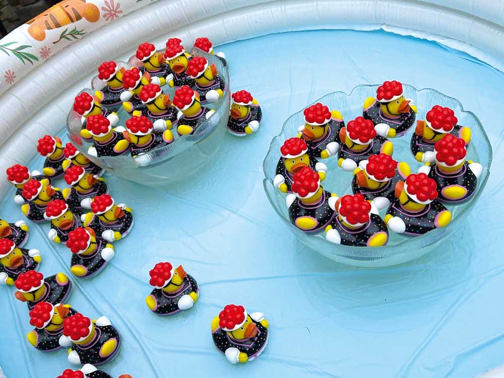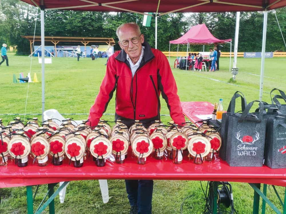 „Schwarzwald“ war das Thema für Auslosung und Teilnehmergeschenke an beiden Tagen. Am Samstagmorgen zogen die Starter Schwarzwald-Bommelhüte in Miniatur, um ihre Startnummer zu erfahren. Am Samstagabend sorgte das Vorfahren eines kleinen „Ententeichs“ mit Schwarzwald-Gummientchen zur Ziehung der Startnummern für allgemeine Erheiterung. Am Ende der Veranstaltung bedankte sich Angelika Zoller, Obfrau Obedience VDH, bei den Leistungsrichtern für die faire Bewertung, bei allen Teilnehmern für ihr Kommen, bei den Ring Stewards und beim 1. Vorsitzenden des Hundesportzentrums, Walter Lichtenstein, sowie seinem gesamten Team für die reibungslose Organisation und hervorragende Bewirtung.