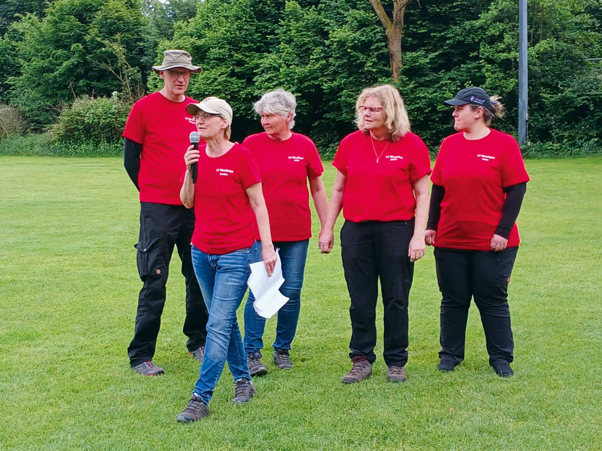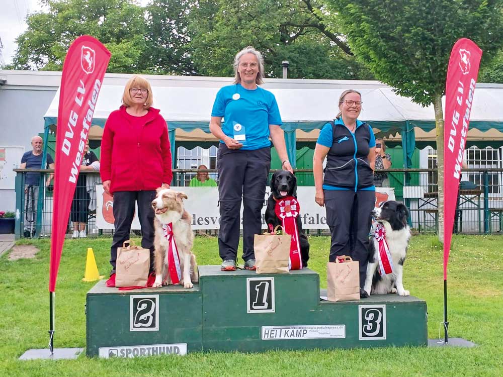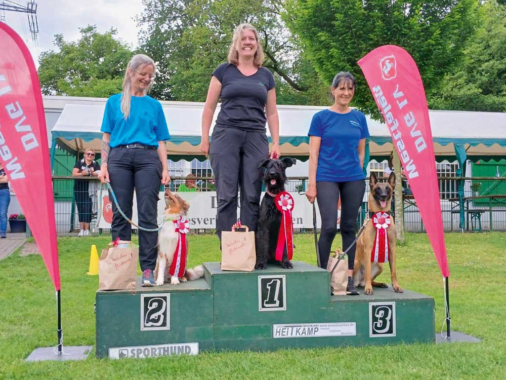 33 Teams waren am Kallweger Feld am Start. Vertreten waren alle Leistungsklassen. Eine wichtige Erkenntnis: Treibball zieht Kreise, das Interesse an der Sportart nimmt zu. Das Teilnehmerfeld spiegelt diesen Trend wider, denn die Leistungsklassen Beginner und 1 stellten mehr als 50 Prozent der Starter. Beim Treibball geht es darum, bis zu acht spielgeeignete nummerierte Gymnastik-Bälle in aufsteigender Zahlenfolge möglichst schnell über die Torlinie zu bringen. Jedes Team hat in jeweils zwei Läufen unterschiedliche Ballformationen zu meistern. Genau deshalb kann auch ein relativ kleines Teilnehmerfeld für einen ganztätigen Wettbewerb sorgen. In beiden Läufen dirigiert der Mensch den Hund mit Hör- und Sichtzeichen, der Hund lenkt die Bälle. Mit jedem Treibballtraining also werden die Kommunikation und das Zusammenspiel zwischen den Team-Partnern gestärkt. Beides war am Turniertag gefordert, denn natürlich hatten die Richterinnen Anja Mitchell und Silke Wieczorek die Parcours, vor allem der höheren Leistungsklassen, mit einigen Herausforderungen gespickt. Doch nicht nur die Bälle waren gut aufgelegt, sondern auch die Teams. Am Ende lief es für viele vorzüglich – ein Prädikat, das übrigens auch das Team verdient hat, das bei diesem schönen Treibball-Fest für die Verpflegung verantwortlich war.