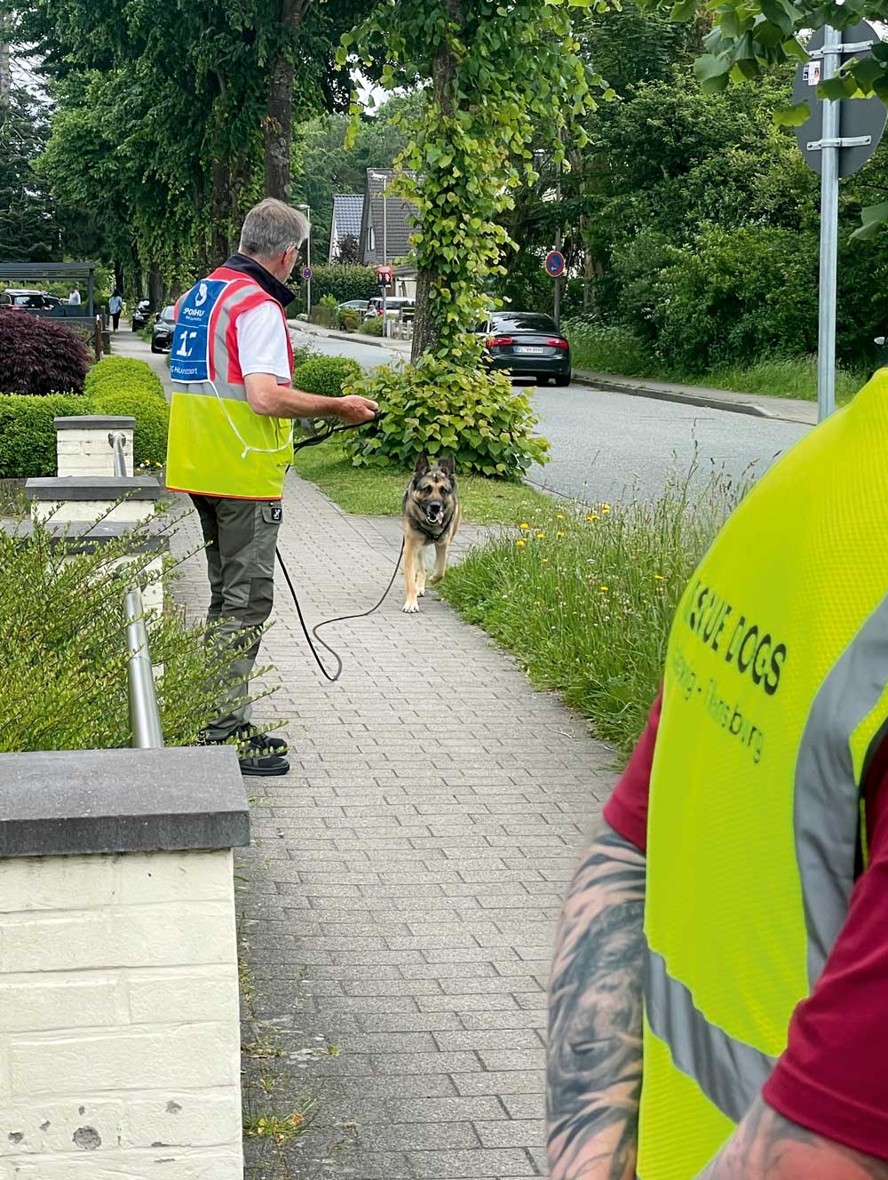 Am Nachmittag erreichten Sabrina Heinemeier mit Rosi (LV Schleswig-Holstein; MV PHV Lübeck) das Ziel und wurden mit 90 Punkten bewertet. Auch Bernd Korsak mit Aib (LV Schleswig-Holstein; PHV Lübeck) konnten die Versteckperson erfolgreich anzeigen und wurden mit 89 Punkten bewertet. Zu diesen beiden gesellte sich Oliver Bade mit Hugo (LV Schleswig-Holstein; MV HSF Fl-Sl), der nach seinem erfolgreichen Trail 94 Punkte einstreichen konnte.