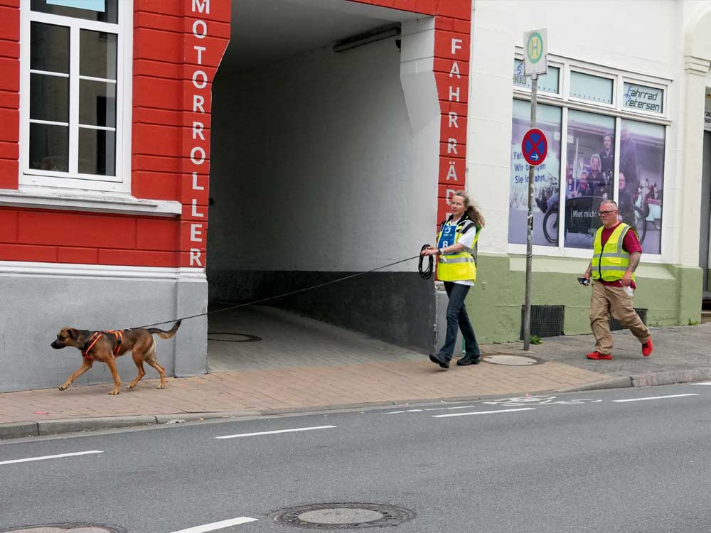 Für den Sonntag hatte das Orga-Team die Flensburger Innenstadt und den Stadtteil Jürgensby festgelegt. Michael Seeger mit Lemmy (LV Hamburg; MV PHV Lüneburg) erreichten ihr Ziel und wurden vom LR mit 87 Punkten belohnt. Leider war Michael am Vormittag der einzige Starter, der die Anforderung erfüllte.