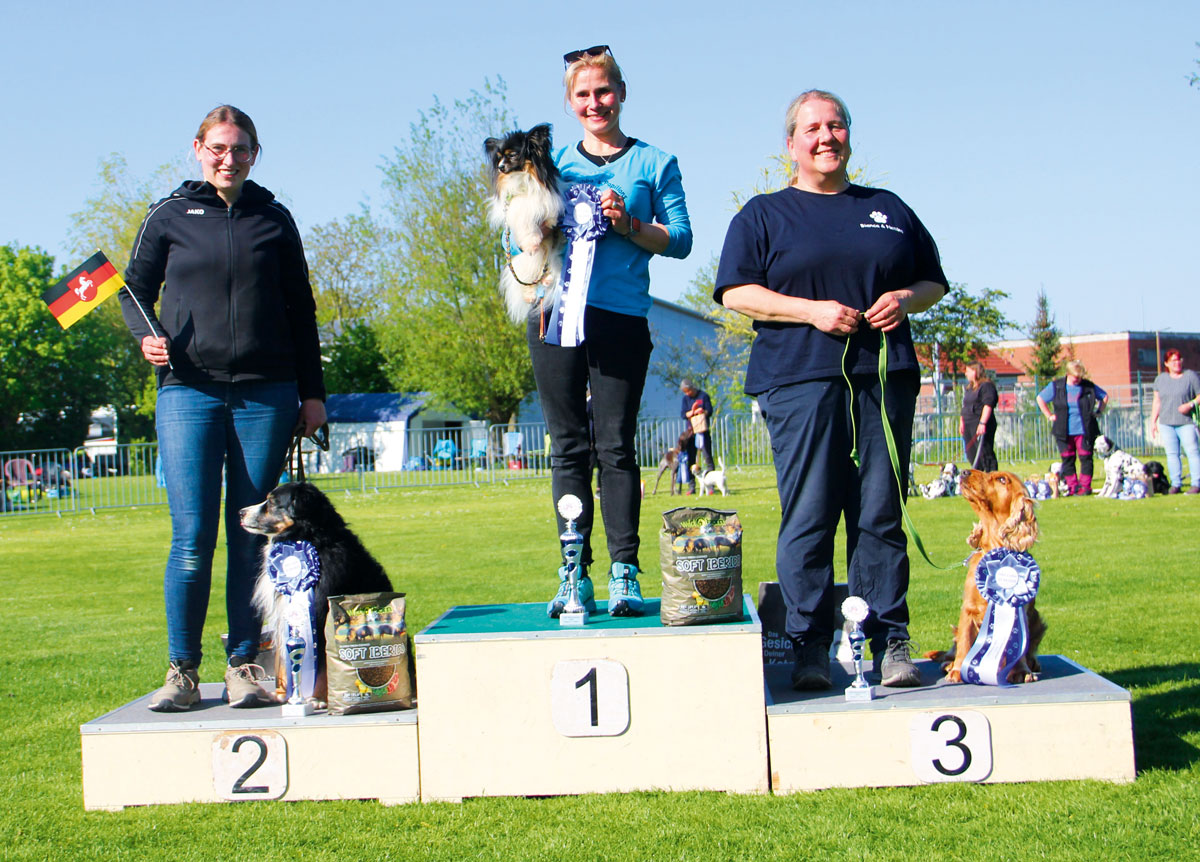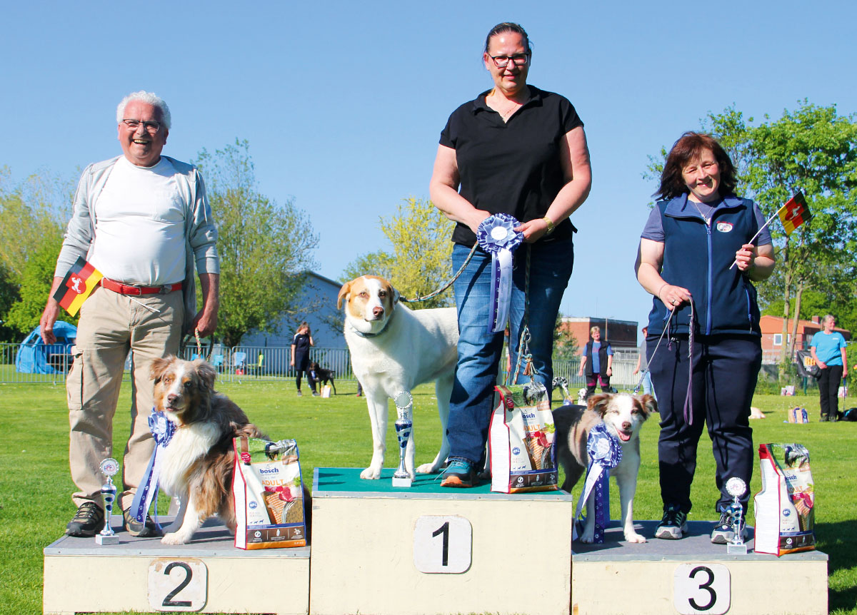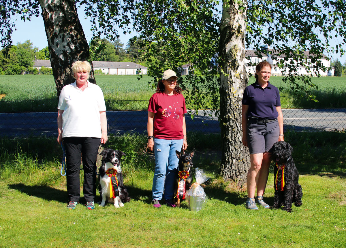In der Klasse 2 lagen Rene Radloff mit Leni (100 Punkte), Janina Remmert mit Echo (95 Punkte) und Dana Tauch mit Loki (95 Punkte) vorne. In der Seniorenklasse belegte Anja Schumacher mit Fergie (100 Punkte) den ersten Platz, gefolgt von Jose Camino mit Nugget (98 Punkte) und Gaby Gloggner mit Idefix (90 Punkte).