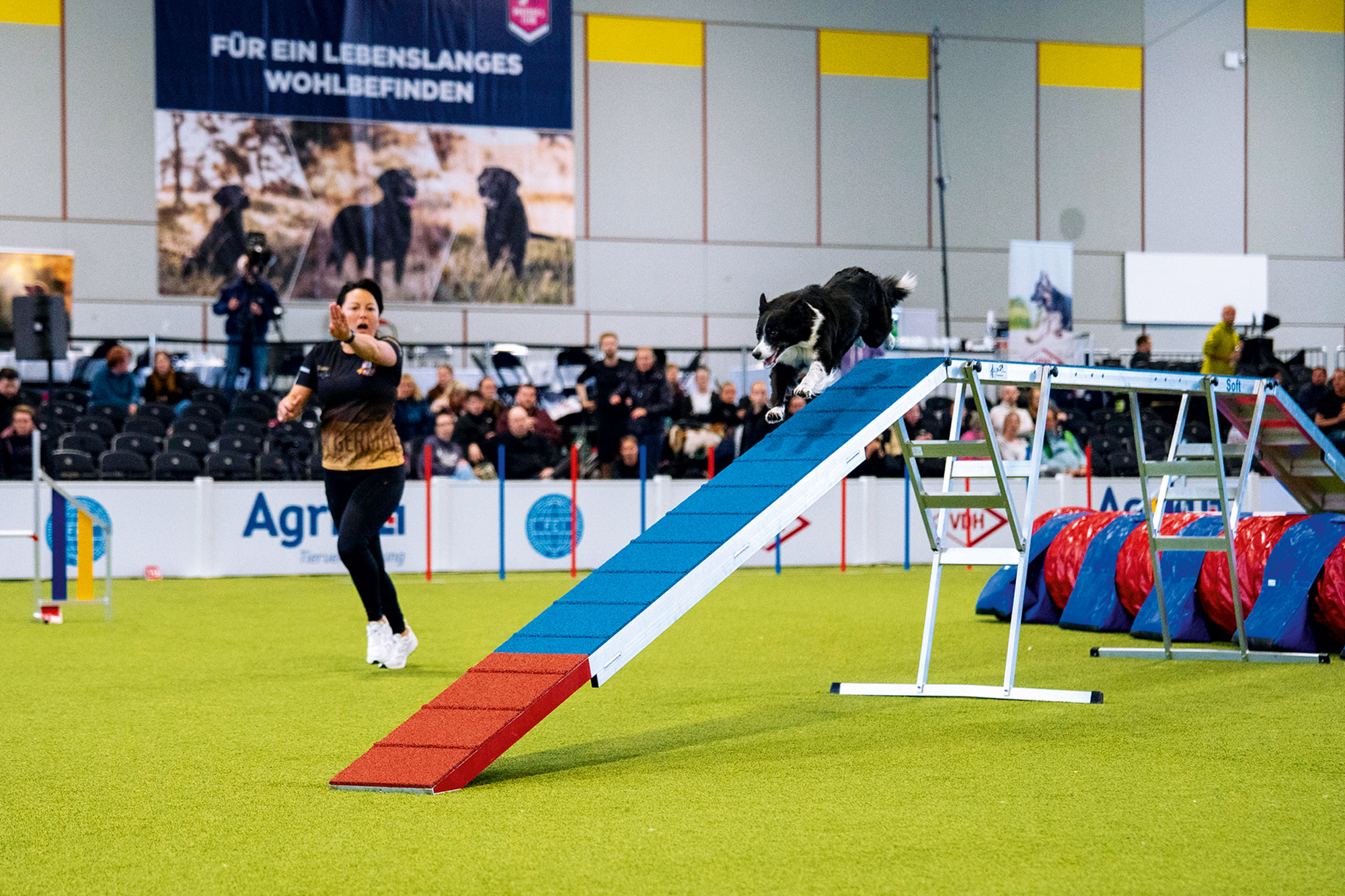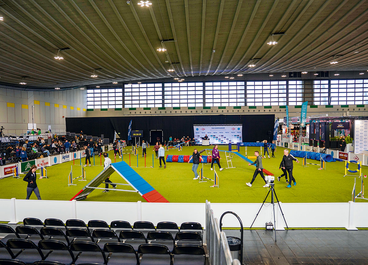 Gab es vor 10 Jahren immer noch ein Murren/Knurren und Unverständnis bezüglich des gewählten Austragungsortes, hat sich dieser nicht nur etabliert, sondern die Starter haben selbst festgestellt, die Westfalenhalle 4, der Ehrenring, ist nicht ihre Traumlocation, aber es gibt keinen alternativen Austragungsort, der der Atmosphäre einer Weltmeisterschaft nur annähernd so gleich kommt, wie dort. Was heißt das? Einerseits die negativen Seiten, man trifft auf viele Menschen mit Hunden in der Ausstellung, die nicht zu den eigenen Sportkollegen gehören. Die teilnehmenden Hunde sind entweder mit den Hundeführern auf der Tribüne oder ggf. auch kurze Zeiten in Boxen untergebracht, es gibt einen Vorbereitungsring, der den jeweiligen Startern vorbehalten ist …und während aller Läufe gibt es eine lebhafte Moderation bei entsprechender Lautstärke, die das Publikum begeistert und von dem dann selbst auch viele laute, positive und erschrockene Ausrufe die Läufe begleiten. Und die Tribünen sind vom frühen Morgen bis einschließlich zur Siegerehrung vollbesetzt!