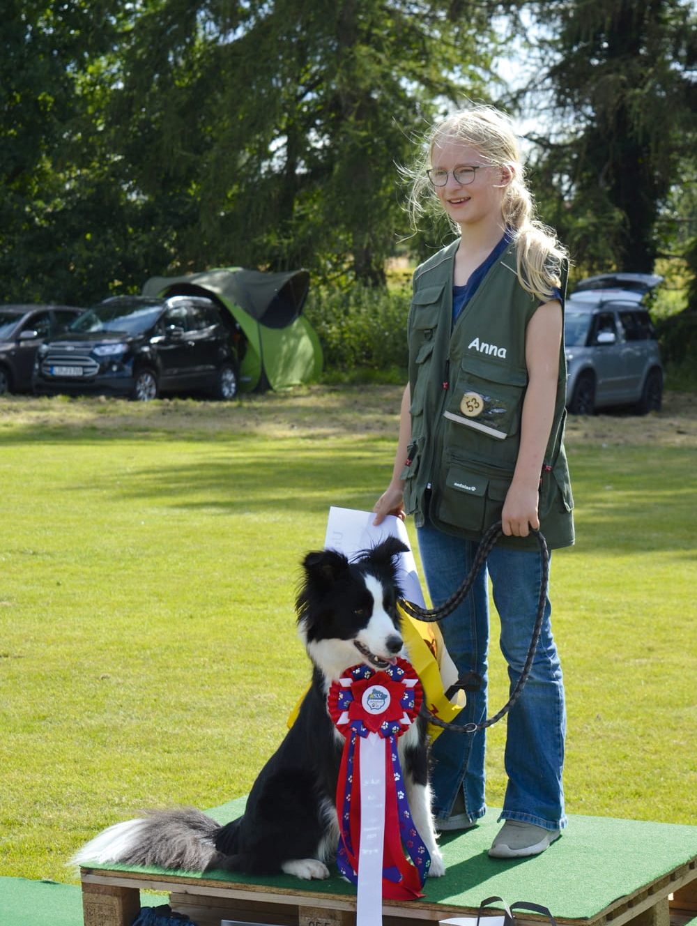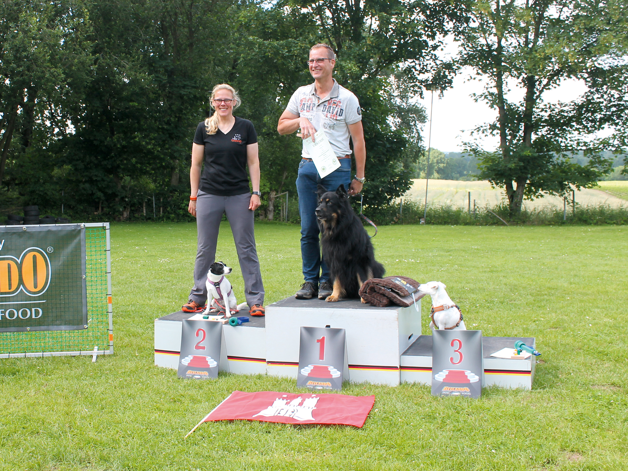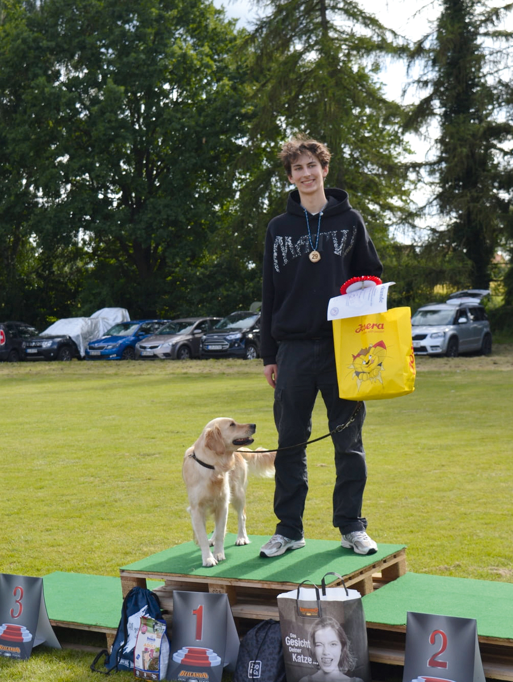 Mit dem 14. Platz blieben Britta Szeimys mit Emil und ich mit Kissi o. AK. Aber zum Trost, leider sind die Hälfte der Teilnehmer in den Klassen 2 und 3 durchgefallen. Für die Mannschaftswertung haben Inga, Marko und Uschi Punkte gesammelt und den 3. Platz belegt.