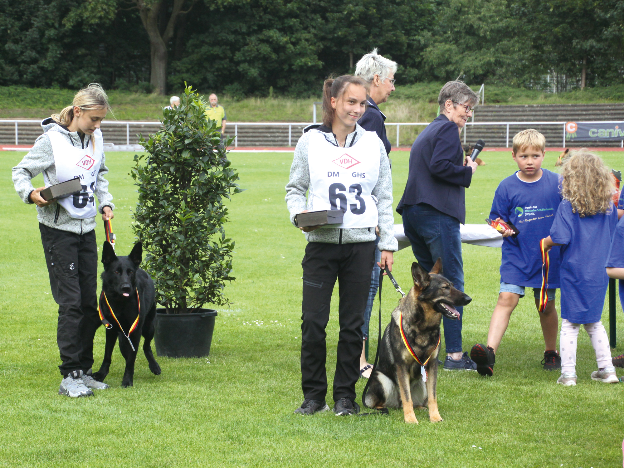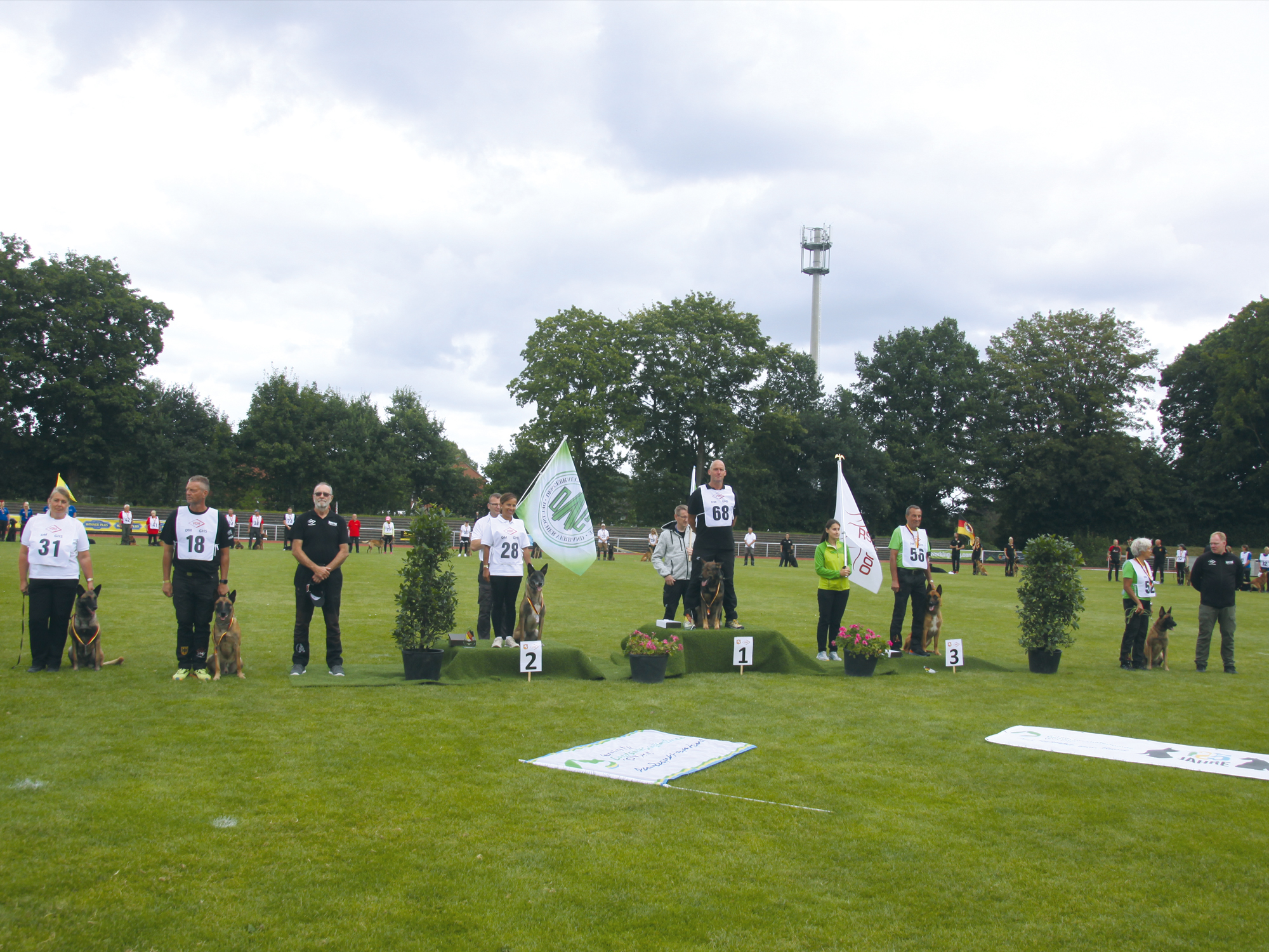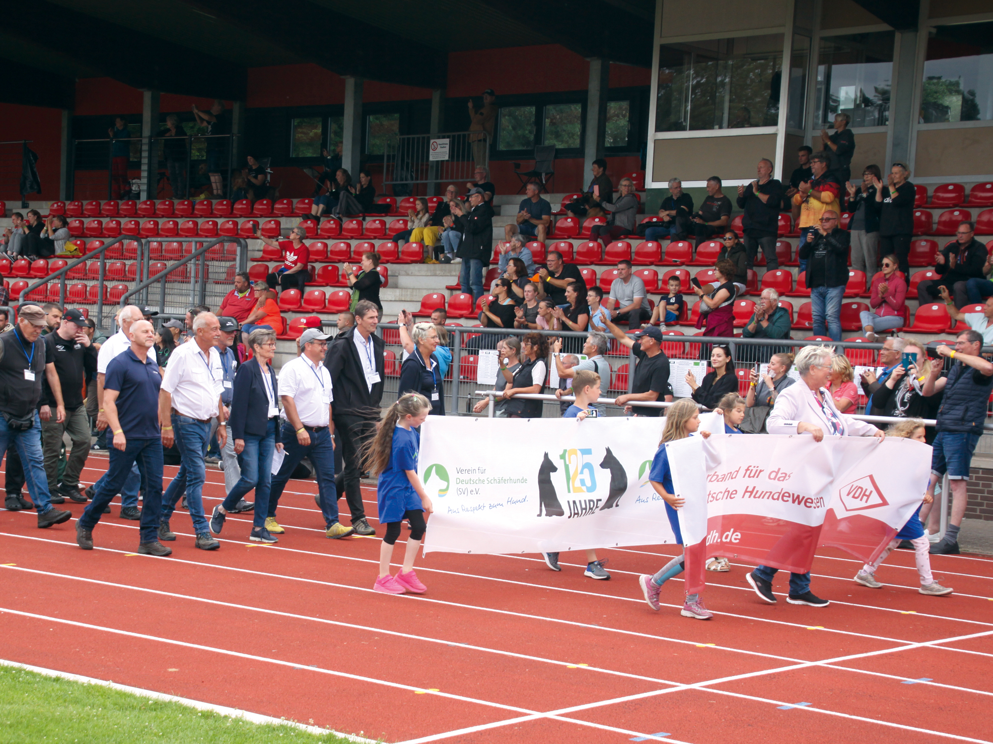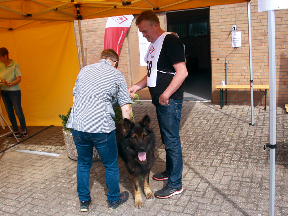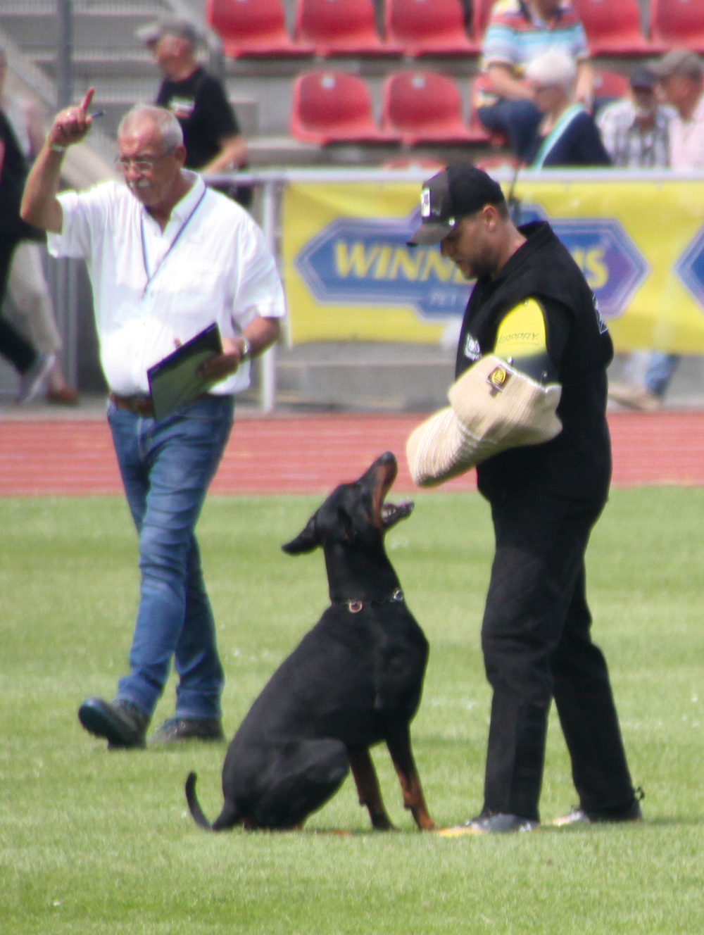 Einvernehmlich konnten wir dann tatsächlich durch eine vom VDH eingesetzte Veranstaltungs-Tierärztin jeden gemeldeten Hund – nicht hinter geschlossenen Türen – sondern öffentlich für alle sichtbar und nachvollziehbar einem Vet-Check (Chip-Kontrolle, Wirbelsäule abtasten, Gangwerksprobe, Herz- und Atemgeräusche und Zähne kontrollieren) unterziehen. Eine Bemerkung der Tierärztin zu einem Hund „sag deinem Hundeführer bitte, du frisst mich nicht, ich dich auch nicht; vielleicht entspannt Herrchen sich dann und das überträgt sich auch auf dich“. Insgesamt hörte man Erleichterung und nicht ein Hundeführer*in hat diese Kontrolle negativ gesehen. Im Gegenteil es gab neben der Zustimmung die Frage, ob es nicht sinnvoll sei, in der heutigen Zeit grundsätzlich bei Großveranstaltungen eine derartige Kontrolle zu machen, das könnte nur zeigen, dass wir alle gemeinsam verantwortungsbewusst mit unseren Hunden umgehen und diese nicht als SPORTGERÄT benutzen.