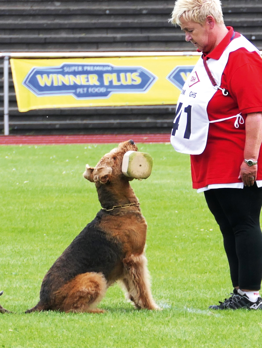 Es gab dann beginnend ab Februar drei Seminare und beim letzten gab es gleichzeitig die Sichtung, bei der dann die Helfer, die für die diesjährige VDH DM zum Einsatz kamen, ausgewählt wurden. Von allen Beteiligten an diesen 3 Seminaren habe ich nur gehört, es war eine Freude, wie man von Termin zu Termin die Weiterentwicklung dieser jungen Sportler erkennen konnte. Sie erinnern sich, bei der VDH-DM stehen alle 9 in Deutschland als Gebrauchshunde zugelassenen Rassen im Wettkampf, um die begehrte Fahrtkarte zur Weltmeisterschaft (Airedale-Terrier,