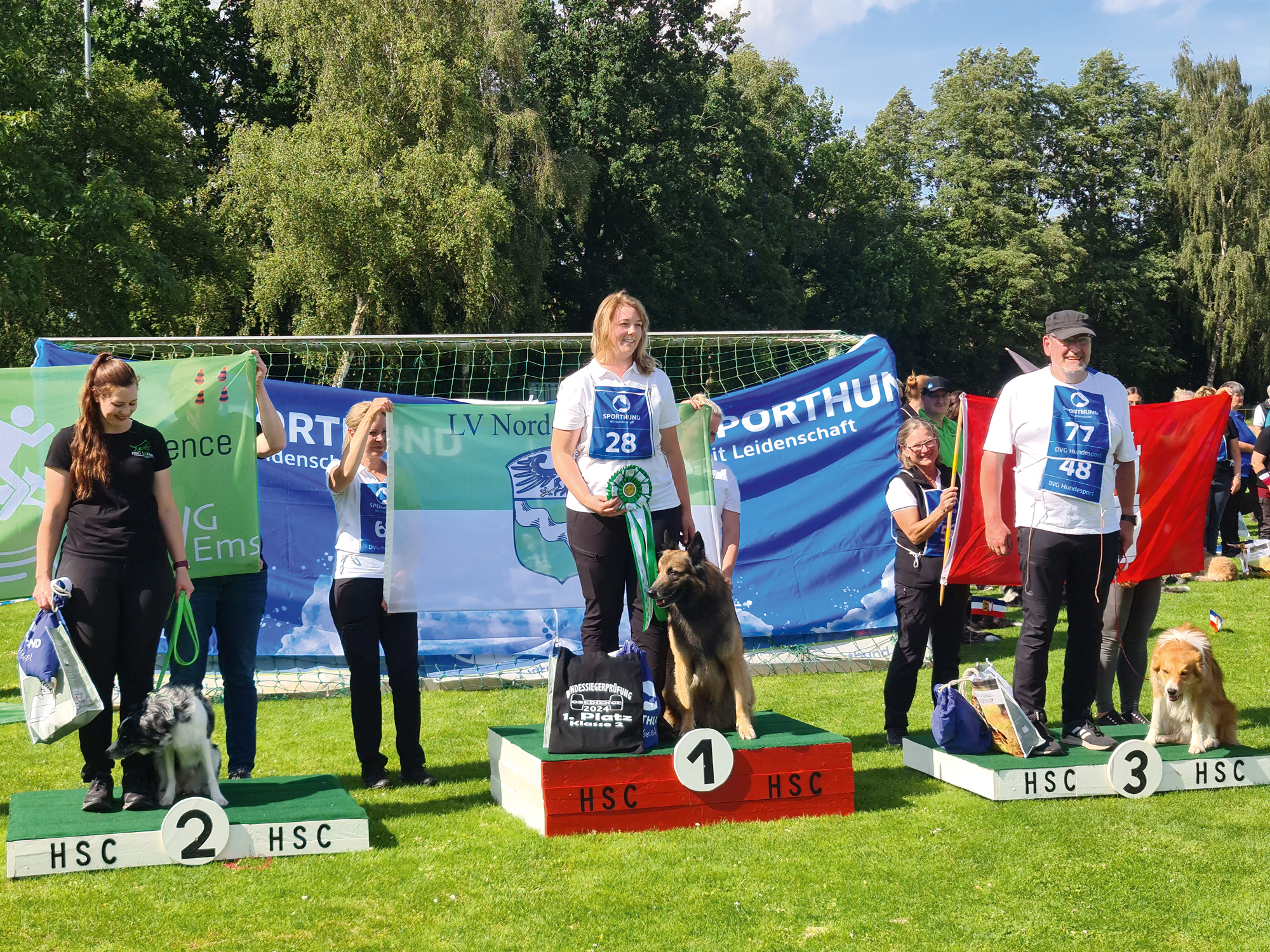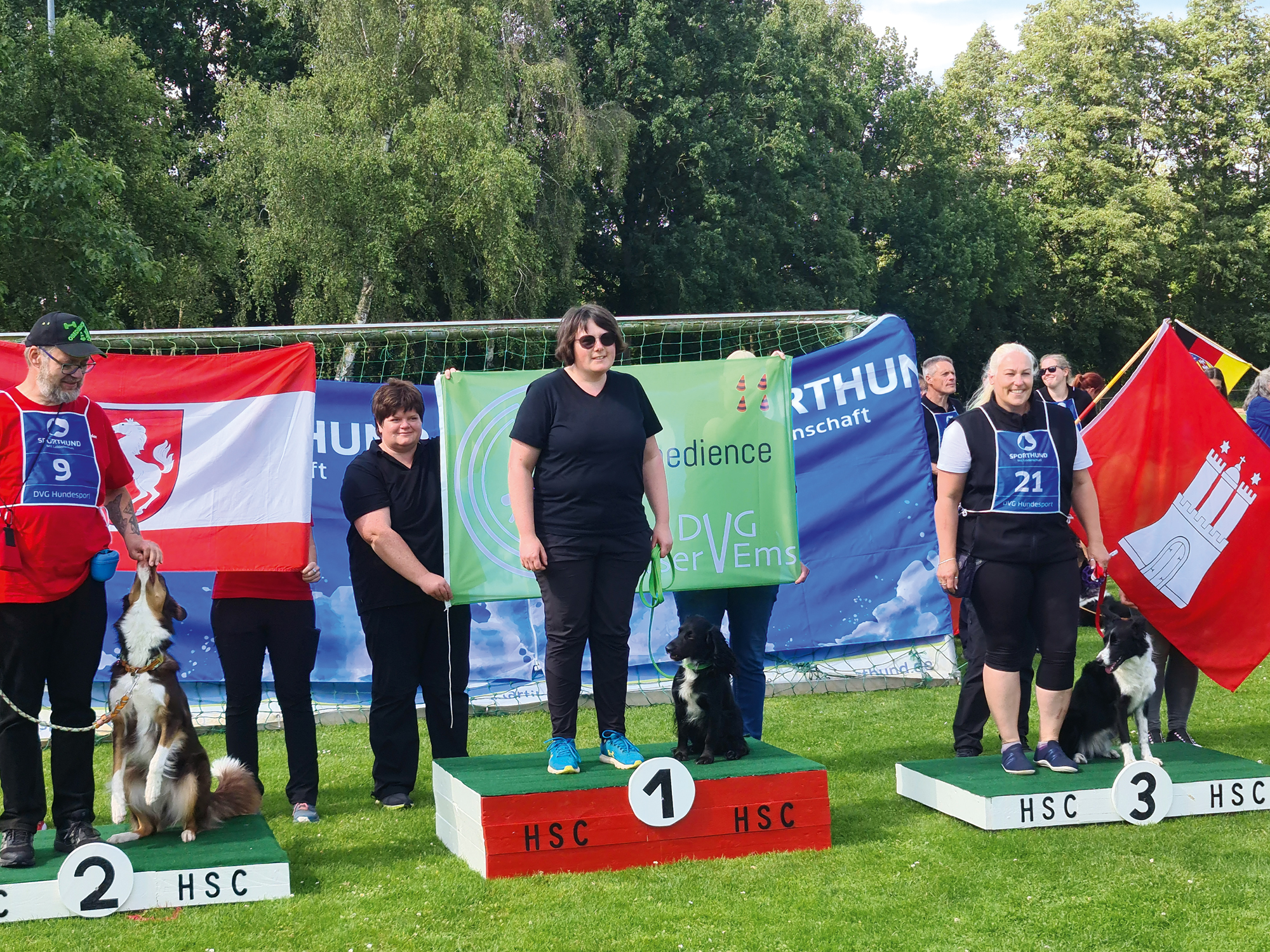 Die Klasse 1 gewann Denise Dannemann mit ihrem Cocker „Flip“ und vorzüglichen 280 Punkten, gefolgt von Frank Reisloh mit „Buffy“ und 273 Punkten. Auf Platz 3 landete Inga Finnberg mit ihrer Border Collie Hündin „Hash” mit 268 Punktion. Für die vorderen Plätze der Klasse 2 brauchte man auch ein „V“ und so gewann Yvonne Woywodt und ihr Tervueren „Edguy“ mit 274,5 Punkten vor Marie Schmedes mit ihrem BC „Country“ und 262 Punkten („V“) und Marco Ladermann mit seinem BC „Slim“ mit 245,5 Punkten („SG“).