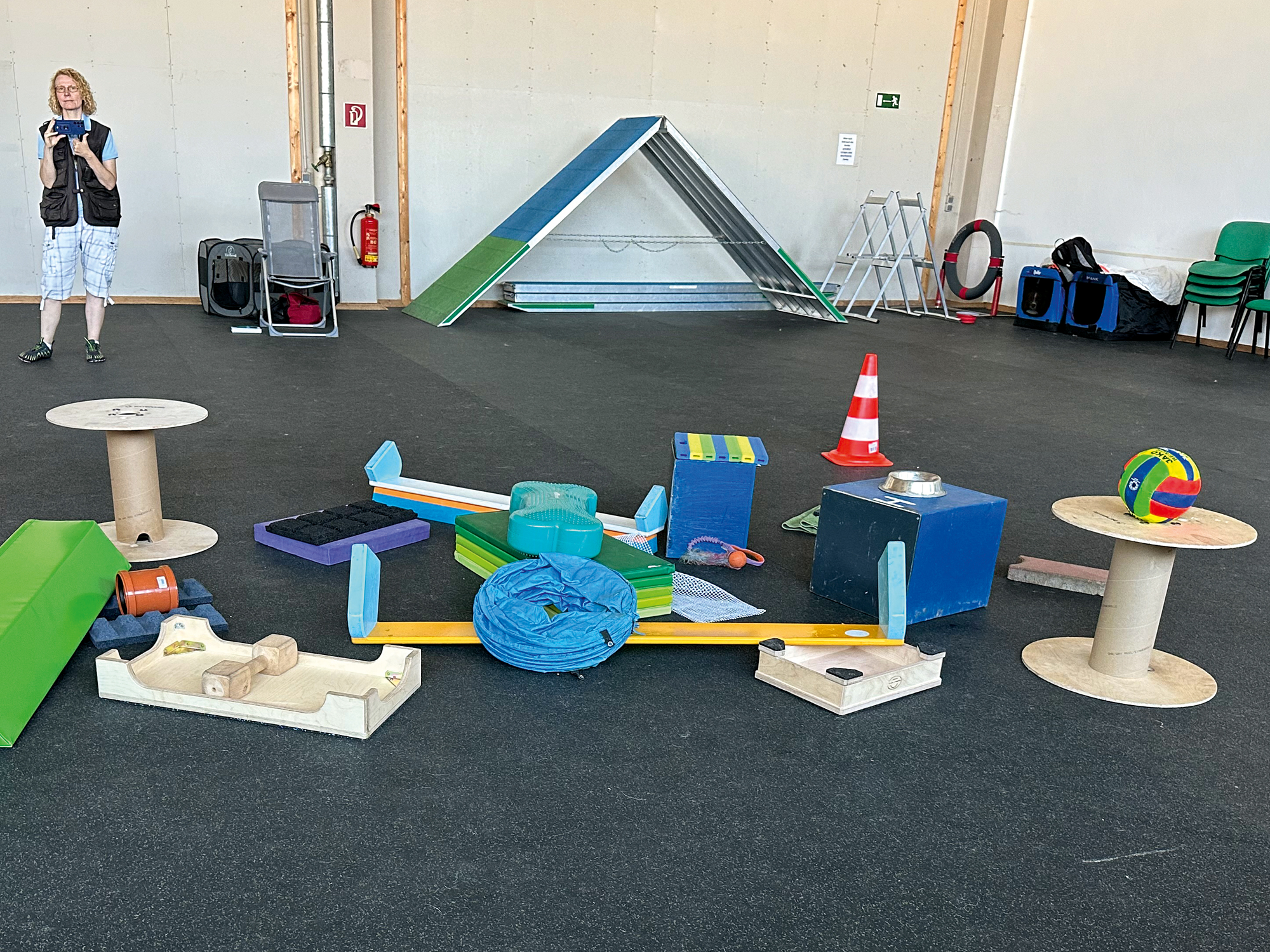 Danach ging es in die Halle zur Praxis. Alles was wir bis dahin in der Theorie gehört und gelernt haben, wurde nun in die Praxis umgesetzt. Trümmerfelder bauen von LK 1-3. Behältnisse wurden ausprobiert, die Fläche wurde abgesteckt und so vieles mehr. Wastl, Karins Malinois Hündin Dora (LK3) sowie unsere eigenen Hunde haben brav mitgemacht, so dass jeder Teilnehmer am Ende ein gutes Gefühl für die zukünftige Aufgabe hatte.