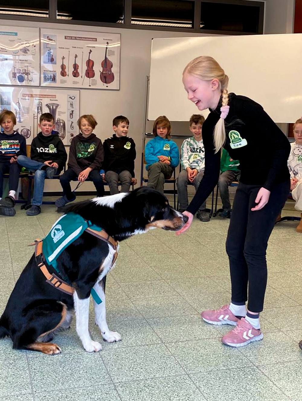 Und das ist wohl der Grund, warum wir dieses Ehrenamt ausüben: Kinder, und insbesondere die, die Angst vor Hunden haben, können mit unseren freundlichen Vierbeinern Vertrauen fassen und im sicheren Rahmen den Umgang mit Hunden einüben.