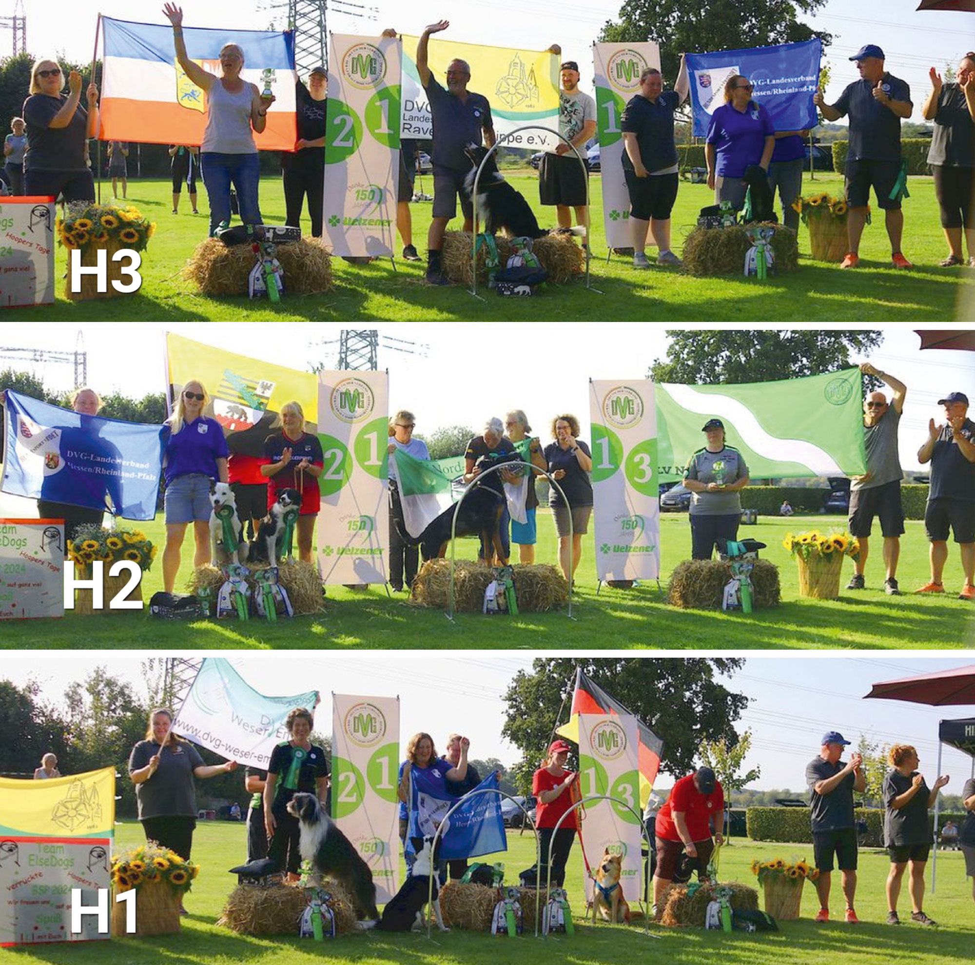 Verdient Sieger der BSP 2024 wurden am Ende die Teams mit der perfekten MenschHund-Zusammenarbeit und dem gewissen Quäntchen Glück. Glückwunsch an Marcel Verbruggen und seinen Aiko aus dem gastgebenden Landesverband Ravensberg-Lippe zum DVG Hoopers Bundessieger 2024. Zu den ersten Gratulanten gehörte die Bundessiegerin aus 2023. Obwohl ihr Hund gesundheitsbedingt nicht starten konnte, hatte sie den weiten Weg zur BSP auf sich genommen, um den neuen Siegern zu gratulieren.
