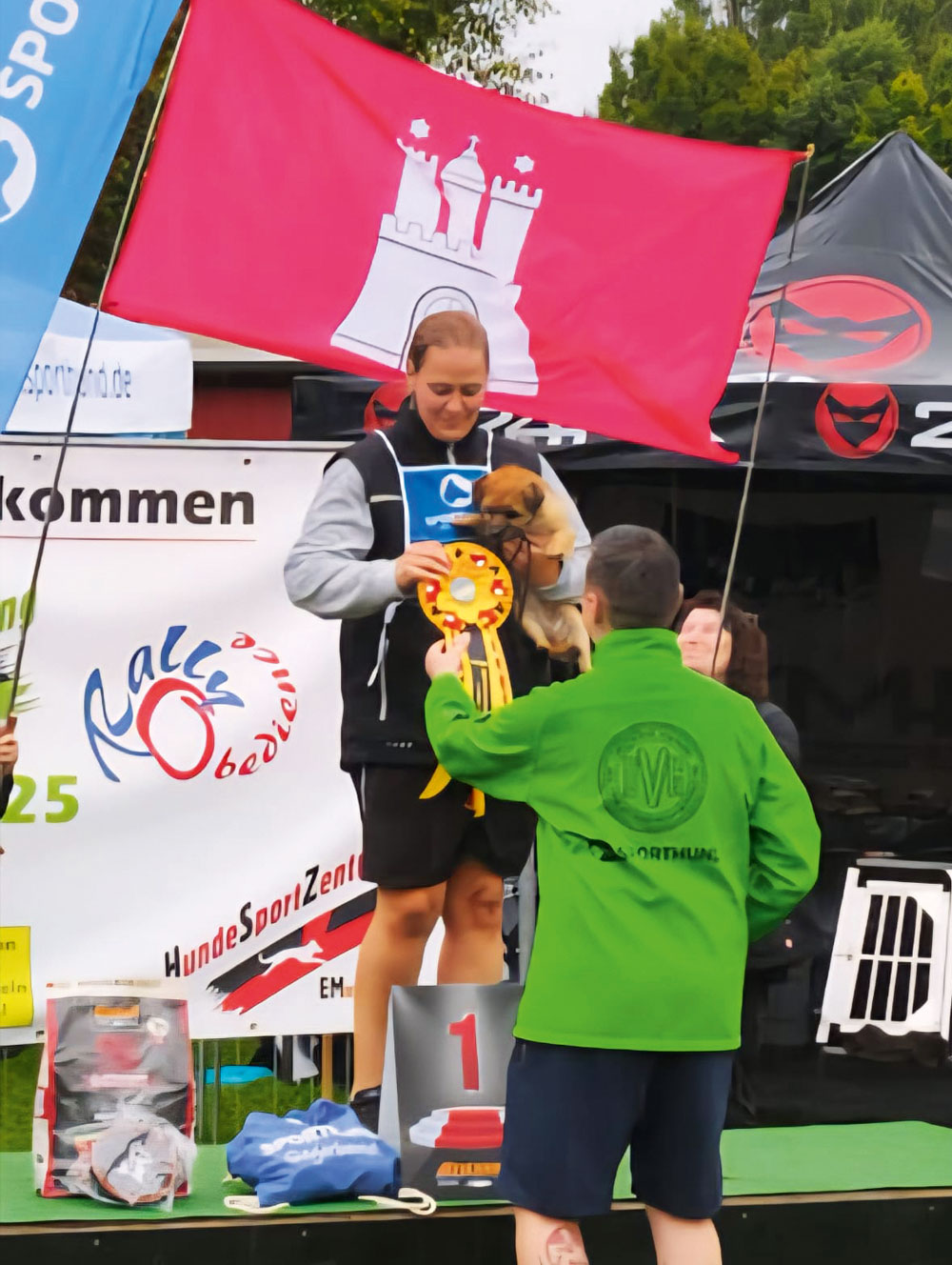 Schon am Tag zuvor hatten wir Gelegenheit, in den großzügig abgesteckten Ringen zu trainieren und unseren Hunden das Gelände zu zeigen. Ein außergewöhnlich tolles Vereinsgelände mit allem, was das Hundesportlerherz begehrt! Darüber verfügen mehr Vereine im Land, aber so einen schönen Rasen habe ich auf keinem Hundeplatz je gesehen.