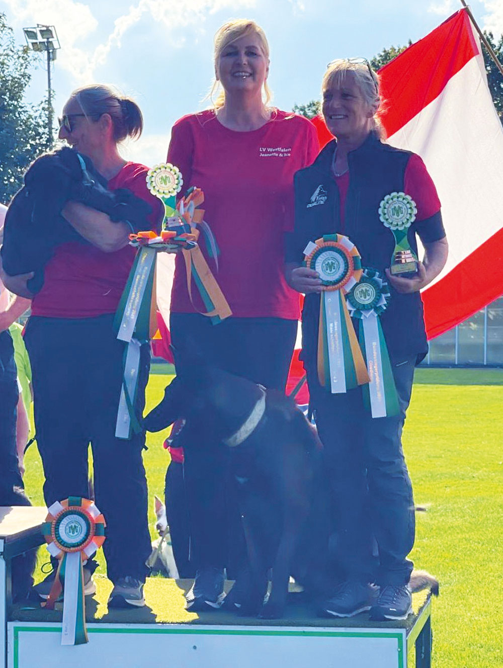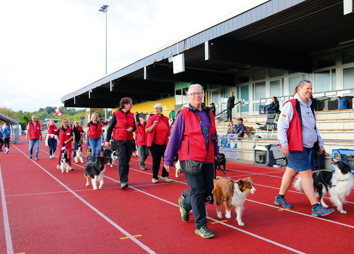 Die offizielle Eröffnung am Samstagmorgen begann mit dem Einmarsch aller Teilnehmenden ins Stadion – in den Farben ihrer jeweiligen Landesverbände – zur Musik und fachkundigen Moderation von Hendrik. Ein erster Gänsehautmoment. Anschließend wurden feierliche Worte vom DVG Präsidenten Christoph Holzschneider, der DVG Hoopers Beauftragten Marion Buck sowie dem stellvertretenden Bürgermeister der Stadt Iserlohn, Michael Scheffler, gesprochen. Sportlich wurde es dann auf den tollen, teils kniffligen Parcours des sechsköpfigen Richterteams. Unser LV war mit 26 Teams am stärksten vertreten und alle zeigten großartige Leistungen. Wir sind stolz auf alle Starterinnen und Starter, besonders in der H1 auf Maike Klingbeil mit einem hervorragenden 4 Platz. Ebenso plaziert Barbara Lippe, Elisabeth Kelm, Lisa Müller, Katharina Klöster, Sabrina Müller, Patricia Minkus, Karin Müller und Caroline Könemann. In der H2 platzierten sich Mathias Roth, und Bettina Engelhardt-Schmidt. Hervorragend auch in der H3 Gudrun Kleber mit einem sehr guten 9 Platz in einem bärenstarken Starterfeld. Platziert in der H3 auch Helgrid Mitze, Bianka Ruschenburg und Bettina Engelhard-Schmidt.